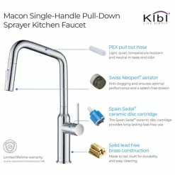 Buy โ Kibi USA Macon Single Handle Pull Down Kitchen Faucet, Chrome, W/ Soap Dispenser ๐