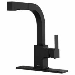 Hot Sale 👍 VIGO Edison Pull-Down Kitchen Faucet With Deck Plate, Stainless Steel/Matte Blac ⌛