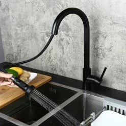 Promo ๐ Fine Fixtures Pull Down Single Handle Kitchen Faucet, Black/Satin Brass ๐