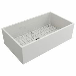 Cheap โ๏ธ BOCCHI USA Contempo Farmhouse Kitchen Sink With Grid And Strainer, 33″, White ๐
