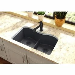 Best Sale 🔥 Elkay Quartz Equal Double Bowl Undermount Sink With Aqua Divide, Dusk Gray ✔️