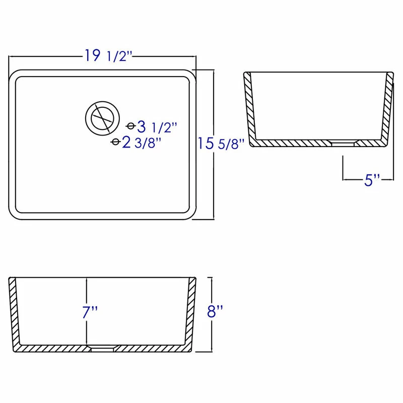 ALFI brand AB507 White 20″ Single Bowl Apron Fireclay Farmhouse Kitchen Sink