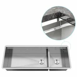 Kingsman 48 inch All-In-One Workstation Double Bowl Sink is more than just a sink. Features a 2-ledge track system that allows you to slide accessories across the sink on 2 levels. Fully utilize it into a full-service prep station. We use T-304 grade 16-Gauge stainless steel, ensuring that your sink is completely resistant. Thick heavy-duty sound guard coating and thick rubber padding on the outside of the sink bowl on all sides provide sound insulation against noise. Its unique zero radius inside corners with a culinary-inspired design creates a more modern look and gives an instant upgrade to any home kitchen. Take the functionality of your kitchen sink to a whole new level with the Kingsman All-In-One Workstation Series and experience the difference.