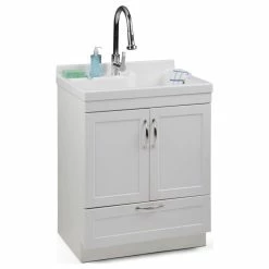 Outlet ✨ Transolid TC-2420-M 24-in All-in-One Laundry/Utility Kit, White, Kit With Faucet ✨