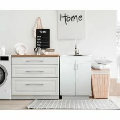 Outlet ⌛ Simpli Home Ltd. Maile 28 Inch Laundry Cabinet With Pull-out Faucet And ABS Sink 👏