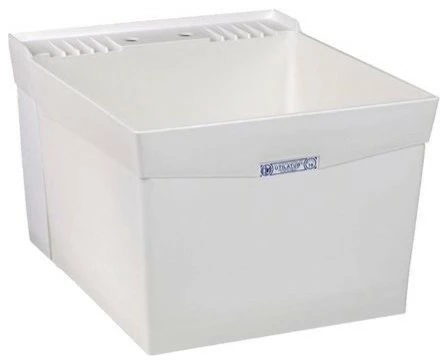 Mustee 17W Durastone Utility Wall Sink – White. The Model 17w is a one piece molded fiberglass Laundry/Utility Sink Produced with Mustee’s proprietary DURASTONE combination of fiberglass and crushed stone blended with special resins for extra strength and durability. The sink has the dimensions of 34 In.x23″x23-1/2″. The sinks drain is integrally molded and comes ready to handle faucets with 4 In. centers.