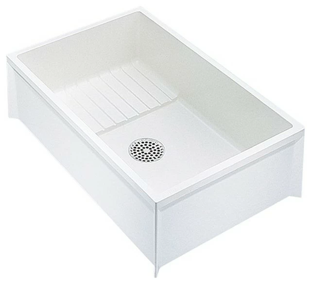 - Mop service basins are one-piece molded from high impact resistant DURASTONE structural fiberglass (36″ x 24″ x 10″)