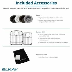 - KIT INCLUDES: ELG1616WH0 sink, LKOBG1616SS bottom grid, LKQS35WH drain, LKCLKIT cleaning kit.