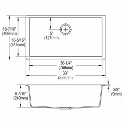 - CABINET SIZE: Minimum cabinet size for this sink is 36″.