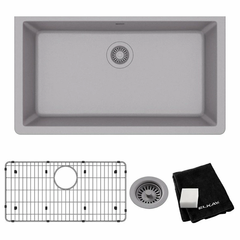 - KIT INCLUDES: ELGRU13322GS0 sink, LKOBG2915SS bottom grid, LKQS35GS drain, LKCLKIT cleaning kit.