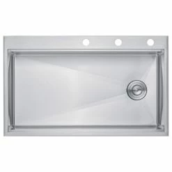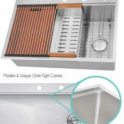 - The advanced modern design-beveled edge, creates a seamless transition from sink to countertop and provide a sleek modern look for your kitchen.