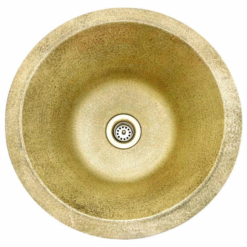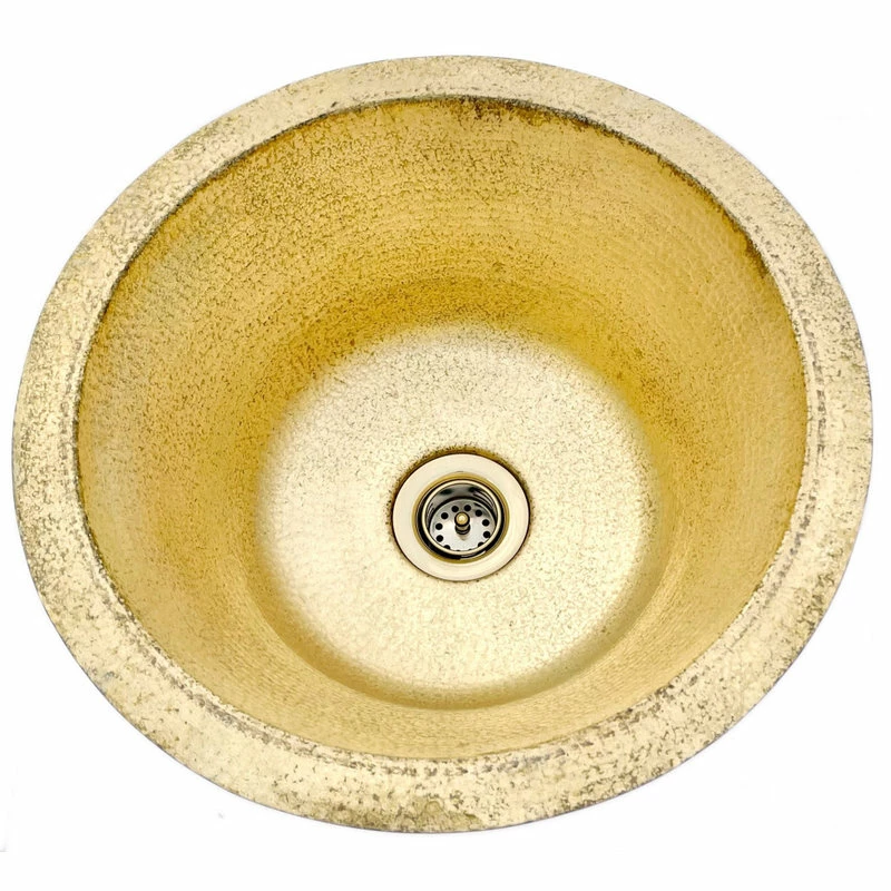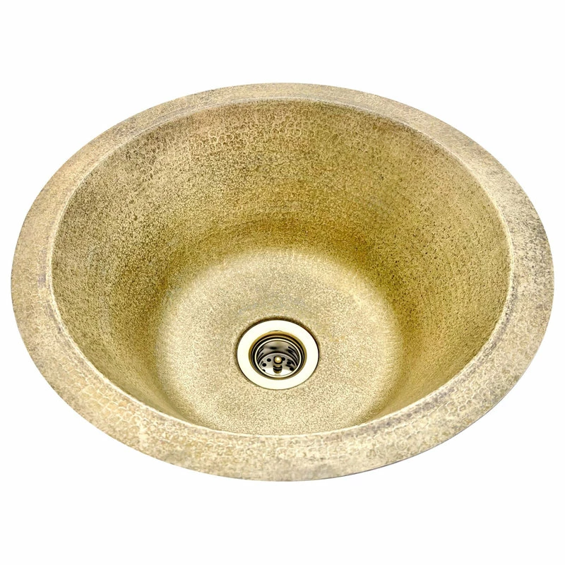 Copper Round Bar/Kitchen Prep Sink 14″ NEW Mexican Hammered Brass with 2″ bar drain. This is the first of our new line of Weathered Brass Hammered sinks. Made by our skilled artisans in Mexico. Looking for a brass sink for the bathroom or kitchen?