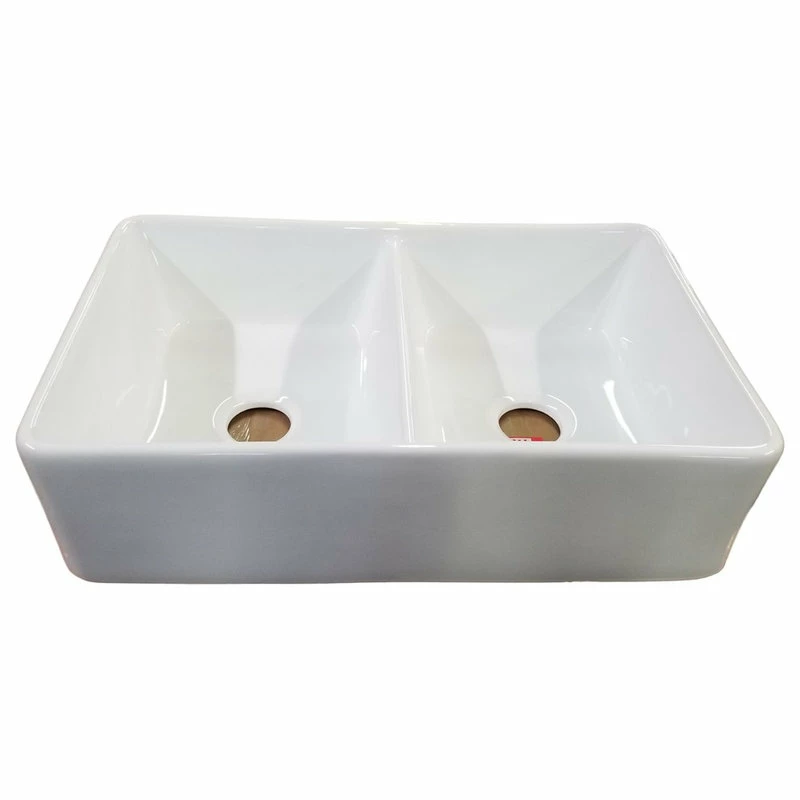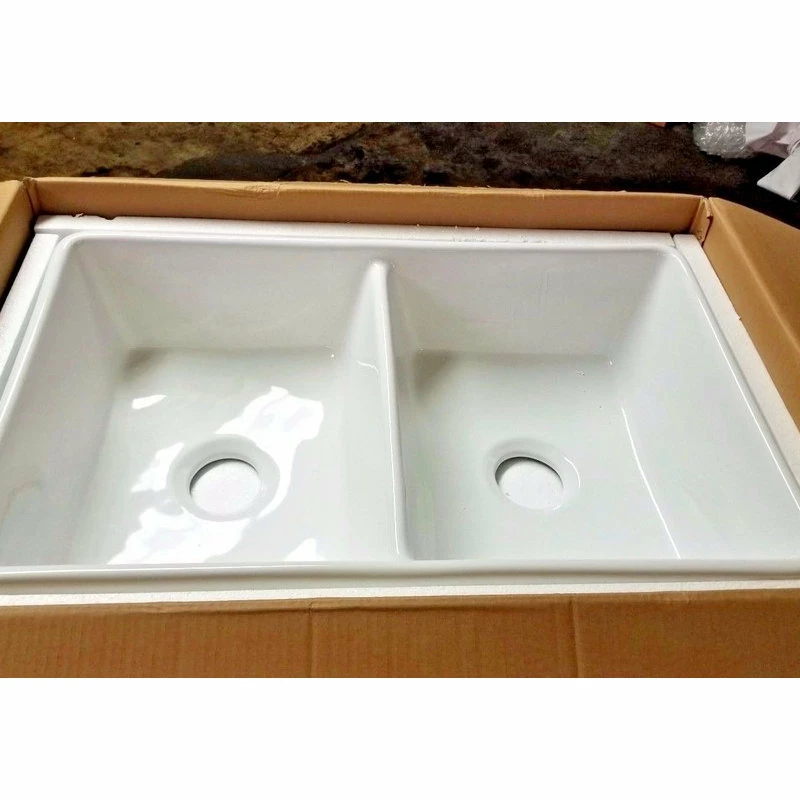 - 32″ Fireclay Double Bowl Apron Front Farmhouse Kitchen Sink Reversible & Heavy Duty! Beautifully Crafted with Old World Design.