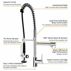 - – Features a 360-degree swiveling pre-rinse spout design.