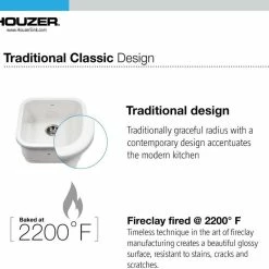 Grace the heart of your home with the timeless classic of a Houzer Fireclay Bar Sink. Fired for over 20 hours at 2200 degrees F, the surface is impervious to stains, scratches and chips, backed by the confidence of Houzer’s Guaranteed Lifetime Warranty. Houzer, a division of Hamat combines the latest in cutting edge technology using the most advanced injection molding techniques along with old world hand craftsmanship. Our fireclay sinks are crafted with 70 years of experience in our own Houzer ISO certified factories in Israel. This is what distinguishes Houzer from the rest. We are the designers, the artists and craftsmen creating our own work of art.