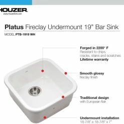 Best reviews of ⌛ Houzer Inc. Platus Fireclay Undermount 19″ Square Bar Sink, White 👍