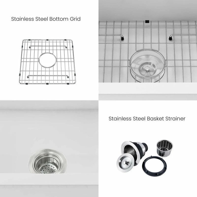 Crafted from the most durable material, this fireclay sink is baked at higher than 2,000 degrees F and features with a smooth, glossy surface that resist heat, stains and scratches. With the protective bottom grid and distinctive look, the Pillar Fireclay Sink is truly crafted to match your design and functional desires.