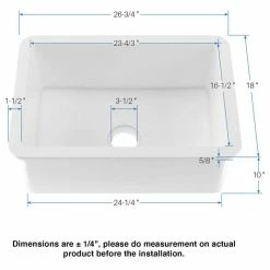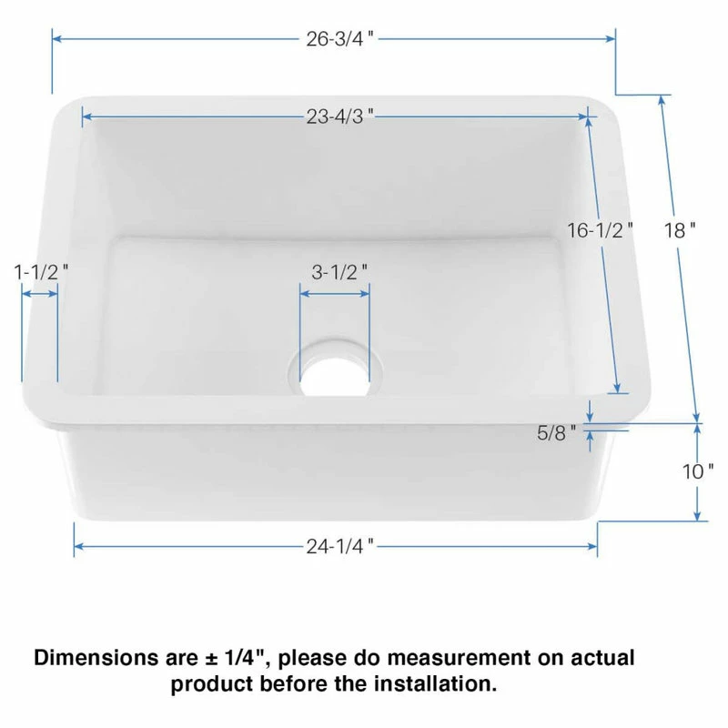 - All sink dimensions are (plus/minus 1/4″)