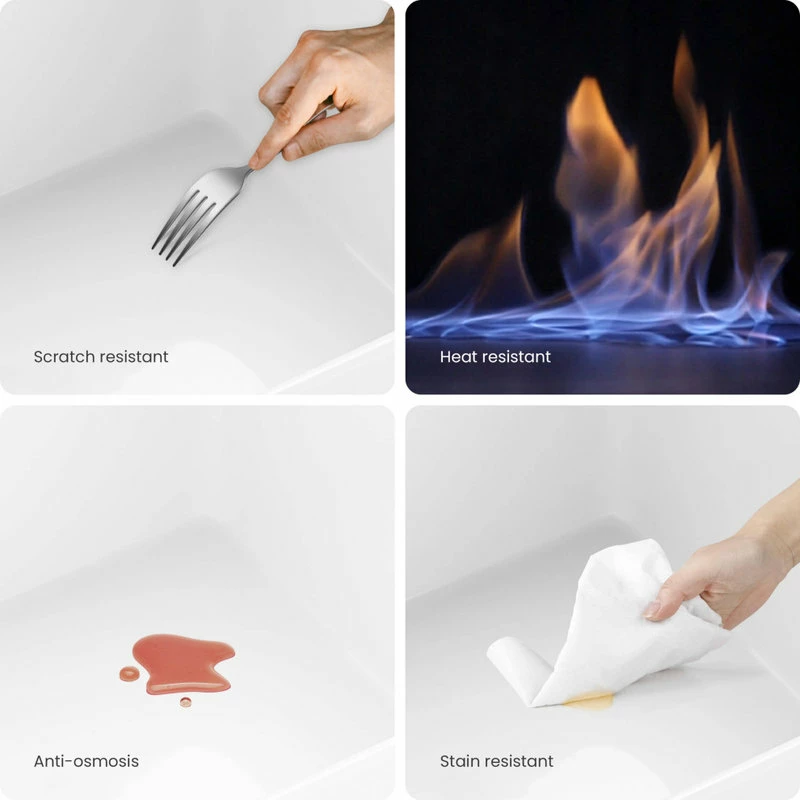 - Non-porous surface prevents discoloration and fading