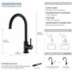 - 360ยฐ SWIVEL SPOUT allows full rotation in and around the sink.