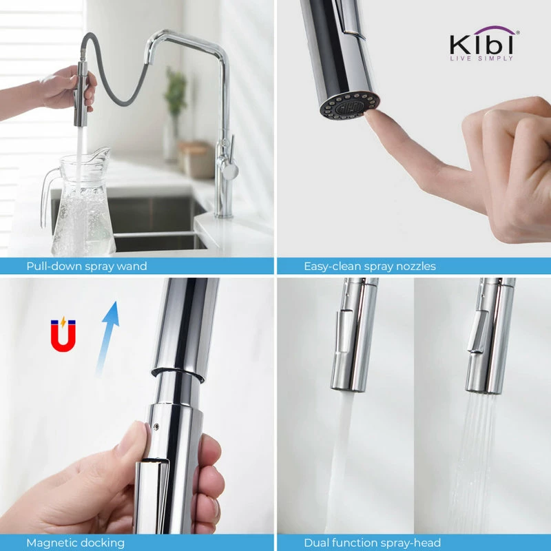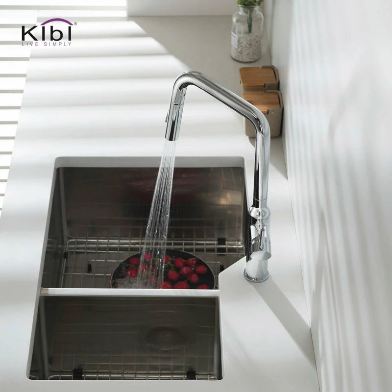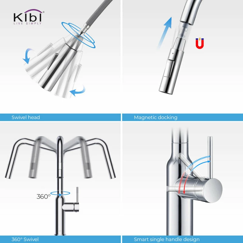 - 360° Swivel: Pull-down faucets with a high arc swivel 360 degrees for added convenience during everyday kitchen tasks.