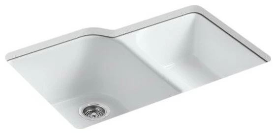 Handle kitchen tasks like a pro with the Executive Chef sink, featuring an innovative offset faucet ledge to maximize basin space. The large/medium bowls allow you to keep clean and dirty dishes separate while offering plenty of room for oversize pots and pans. Crafted from enameled cast iron, this sink resists chipping, cracking, or burning for years of beauty and reliable performance.