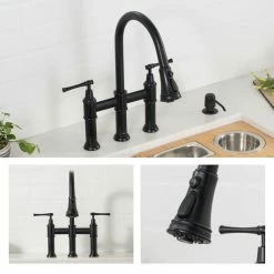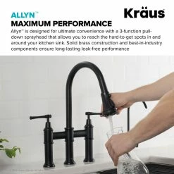 - Product: Kraus Allyn Transitional Bridge Kitchen Faucet with Pull-Down Sprayhead