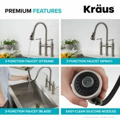 - 3-Function Faucet: Aerated stream and spray for everyday tasks, powerful blade function for heavy-duty rinsing