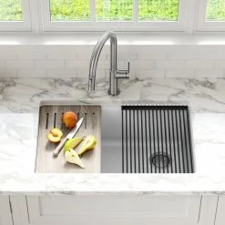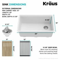 RECOMMENDED ACCESSORIES (sold separately): Keep your counters dry with a self-draining silicone drying mat (KDM-10) that drains water directly into the sink. Protect your sink with a premium stainless steel bottom grid (KBG-GR2514)