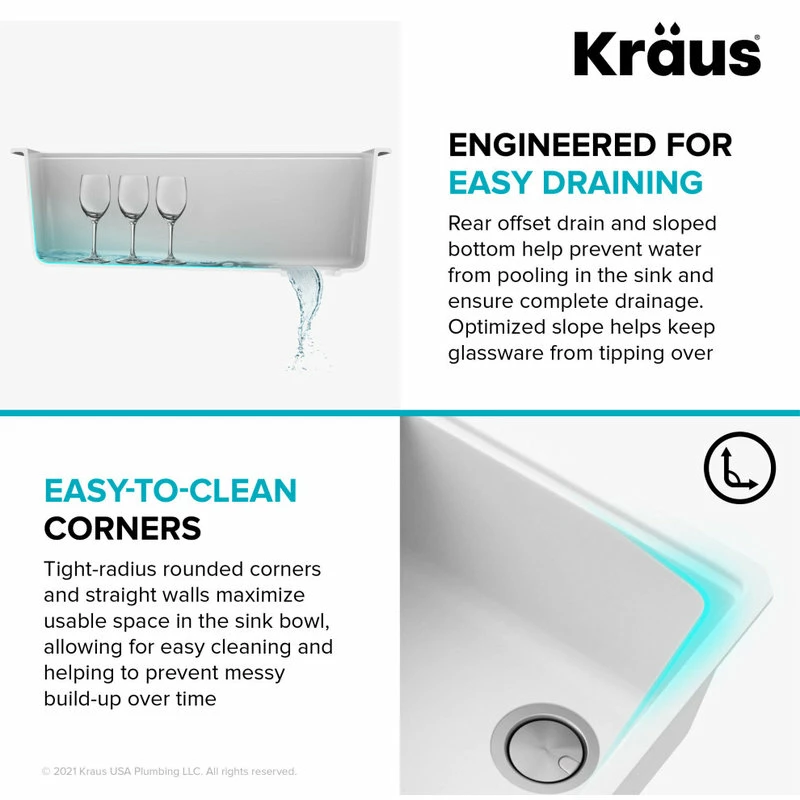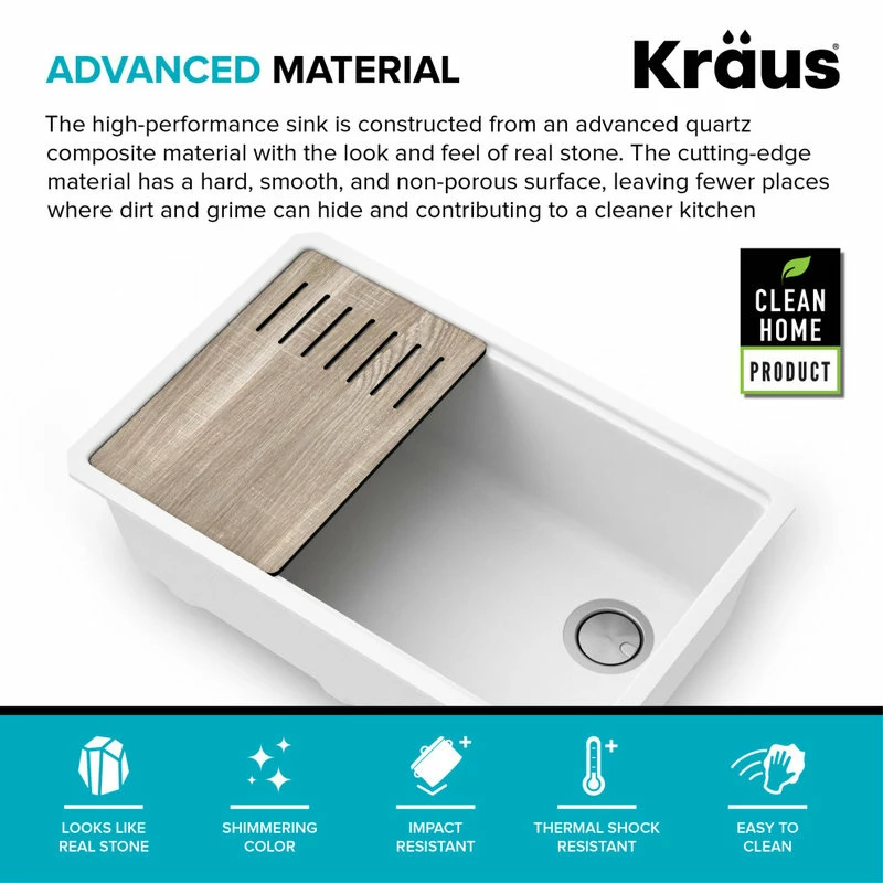PLEASE NOTE: Although Kraus granite and quartz composite sinks are highly heat resistant, placing hot items right from the stove or oven directly into the sink may cause surface discoloration. Consider using a trivet or rolling mat for extremely hot items to avoid potential damage