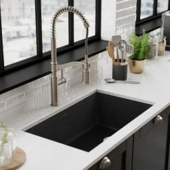 Upgrade your kitchen with a striking sink from the Forteza Series, featuring a robust construction and the luxurious look of real stone. A proprietary granite composite offers durability and a rich, consistent color that will not fade over time.