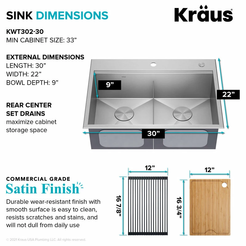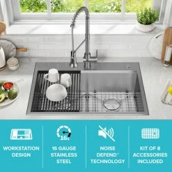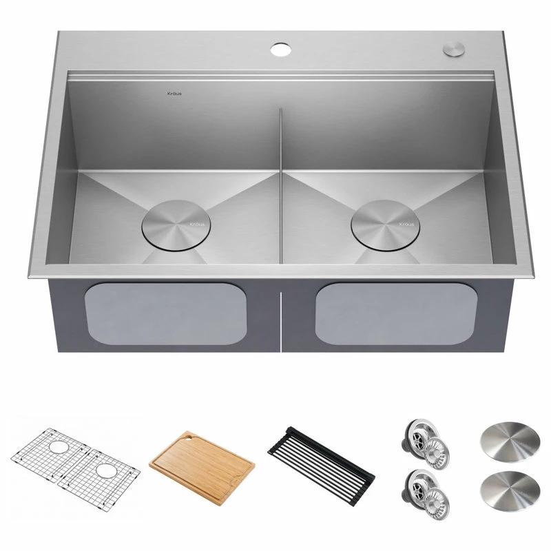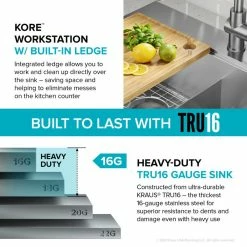 - KRAUS Kore 30″ Drop-In / Undermount Workstation 16 Gauge Stainless Steel Double Bowl Kitchen Sink with Accessories