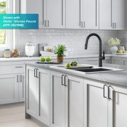 SINK KIT INCLUDES: Granite composite drop-in workstation sink, heavy-duty cutting board, roll-up dish drying rack, drain assembly with strainer