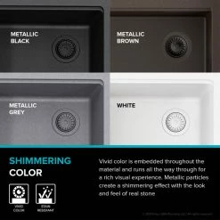 Handcrafted in Italy, Bellucci sinks enhance the functionality of your kitchen with captivating style. The workstation design features an integrated ledge that serves as a platform for custom-fit accessories that slide across the sink, streamlining your kitchen workflow from meal-prep to clean-up. The sink comes packed with accessories, including a multifunctional roll-up dish drying rack and heavy-duty composite cutting board that allow you to work right over the sink without taking up valuable counter space. This high-capacity sink is made from an advanced quartz composite material with metallic particles that create a shimmering multi-dimensional effect with the look and feel of real stone. The cutting-edge blend creates a hard, smooth, compact and non-porous surface, reducing places for waste particles to hide and contributing to a cleaner kitchen. Designed as a drop-in with extra-thick mounting deck, this stylish sink makes a great replacement model and can easily be installed into an existing cut-out with any kind of countertop. A rear off-set drain and easy-to-clean tight-radius corners create a sleek contemporary appearance and maximize usable space in the sink bowl. Engineered for optimal draining, the gently sloped bottom promotes complete drainage and helps prevent water from pooling. The non-porous surface is easy to keep clean. Vivid color is embedded throughout the material and runs all the way through for a rich visual experience. Package includes stainless steel drain assembly.