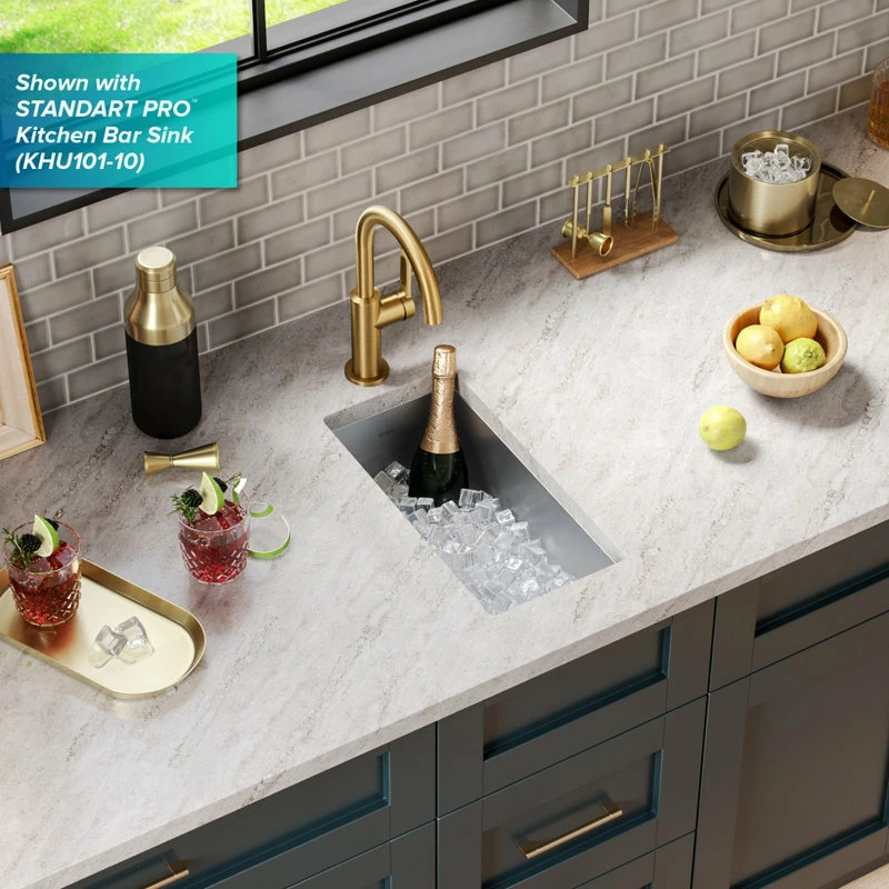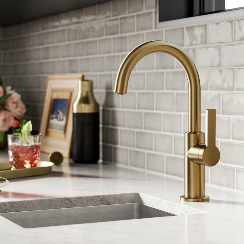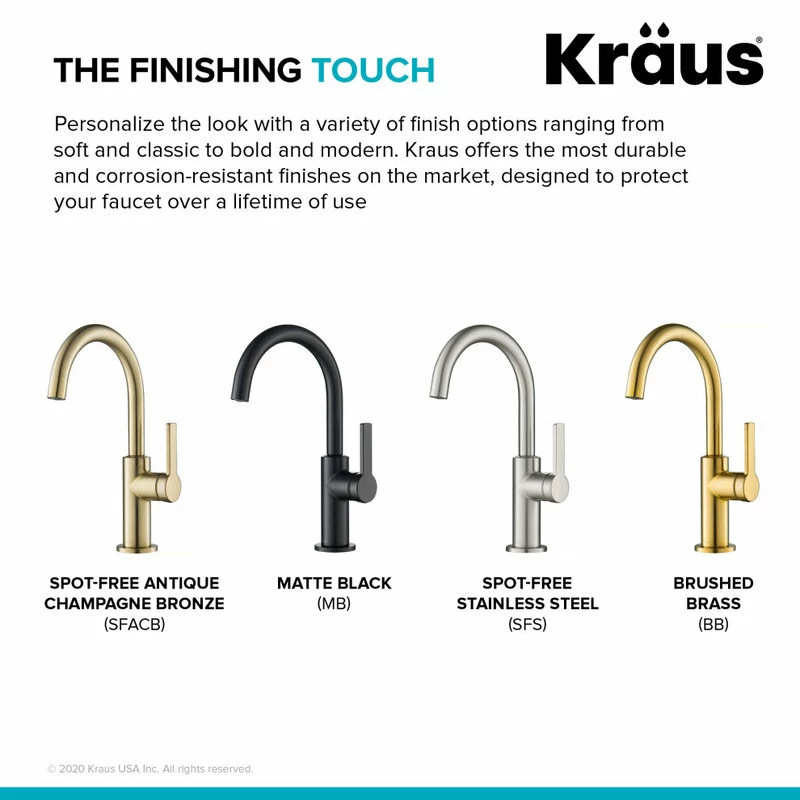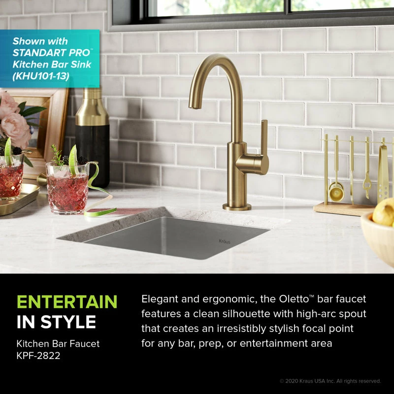 - KRAUS Oletto Single Handle Kitchen Bar Faucet in Brushed Brass