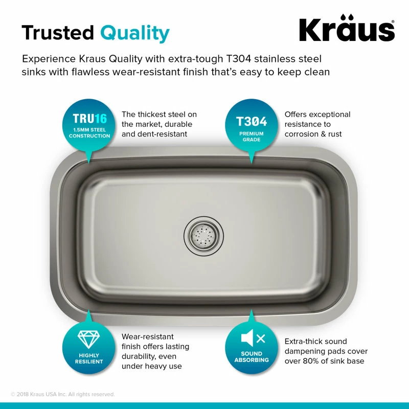 - Installation-Ready: Kraus provides all mounting hardware, cut-out template, installation and care instructions