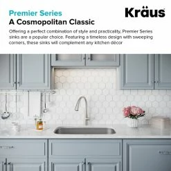 Experience Kraus Quality with classic stainless-steel sinks that will look great in both traditional and modern kitchens. The Premier series features easy-to-clean rounded corners and a wear-resistant finish that will stand up to your toughest kitchen tasks.