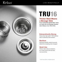 - TRU16 Real 16-Gauge Steel, 1.5mm Thick for a Stronger, Durable and Dent-Resistant Sink