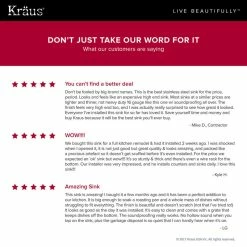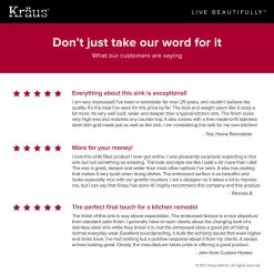 - Installation-Ready: Kraus provides all mounting hardware, cut-out template, installation and care instructions