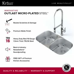 Designed to handle the demands of the busiest kitchen, Kraus Outlast MicroShield Scratch-Resist Stainless Steel sinks offer maximum durability, even with heavy use. The engineered material masks scratches and scuffs, retaining a like-new appearance. Each Kraus Outlast MicroShield sink is made from a single sheet of steel imprinted with an embossed pattern that provides superior resistance to dents and damage. The cutting-edge manufacturing process creates a textured surface, preventing damage from daily use. Explore Kraus Outlast MicroShield Stainless Steel sinks, and discover the perfect solution for your busy kitchen.