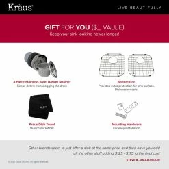 - Accessories Included with Purchase: FREE Stainless Steel Dish Grid, Kitchen Sink Strainer, Utility Bag and 100-percent Cotton Towel