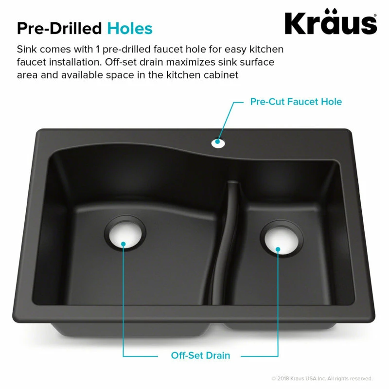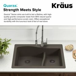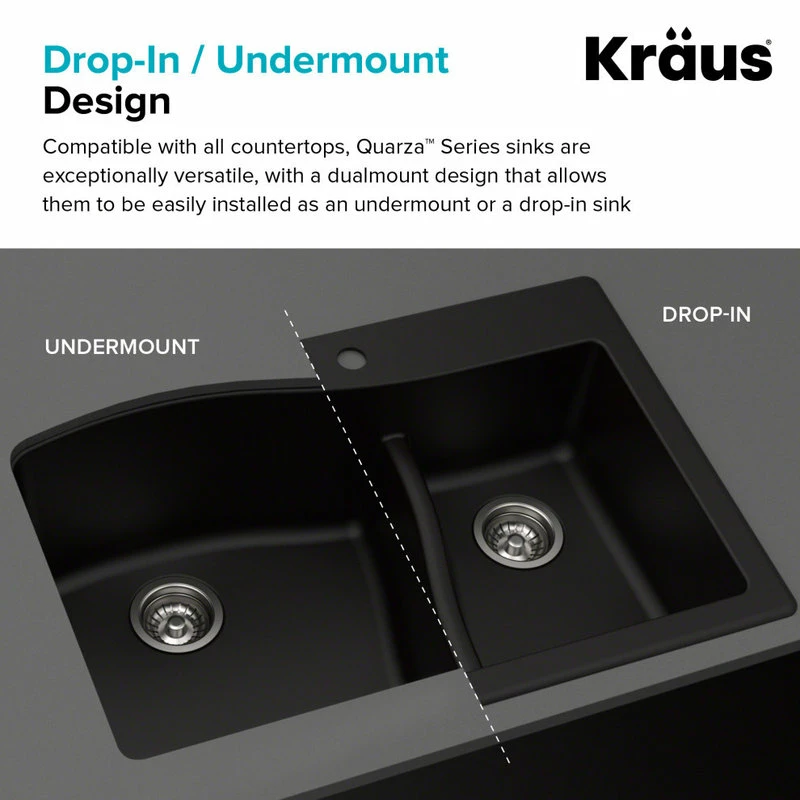 Add a modern touch to your kitchen with an elegant Quarza granite sink, made from 80% natural quartz for maximum durability with the look and feel of real stone. Highly resistant to scratches, scuffs, and stains. Installs as a drop-in or undermount.