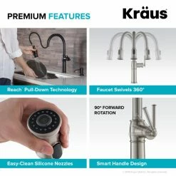 - Reach Technology: Easy-retract hose with swivel adapter offers the ability to flex, pivot, and reach all around the sink
