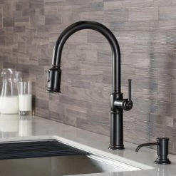 Featuring a classically-inspired design reimagined with new details that celebrate the traditional aesthetic, the Sellette Traditional faucet adds a touch of elegance to any kitchen. A beautifully edged sprayhead and base add visual intrigue to the high-arc spout, creating a perfect decorative touch. The highly functional pull-down design features an ergonomic sprayhead that switches between aerated stream and powerful spray to handle all your kitchen tasks. Reach technology offers an extended range of motion, with an easy-retract hose and swivel adapter for maximum flexibility. Soft rubber nozzles make the sprayface easy to clean for a long-lasting powerful flow. Customize the look with your choice of finish: Sellette Traditional faucet is available in Oil Rubbed Bronze and easy-to-clean Spot Free all-Brite Stainless Steel.