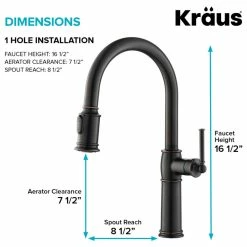 - Dimensions: Overall Height 16 1/2″, Spout Height 7 1/2″, Spout Reach 8 1/2″