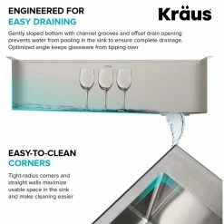 - ENGINEERED FOR EASY DRAINING with rear off-set drain opening and gently sloped bottom with channel grooves that prevent water from pooling in the sink