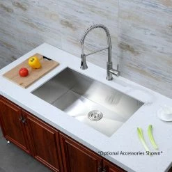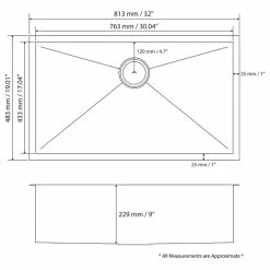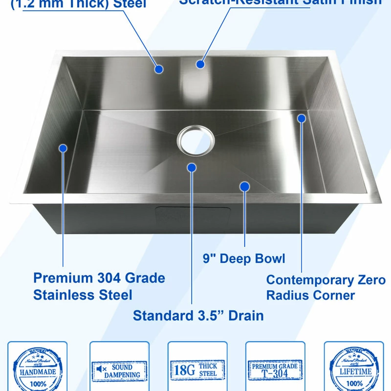 - Luxier BHS32-18Z 32 Inch x 19 Inch Undermount Single Bowl 18 Gauge Stainless Steel Luxury Handmade Kitchen Sink Zero Radius