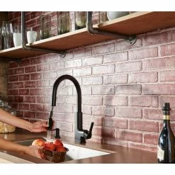 - Faucet pulldown hose offers flexible water delivery and hose retracts with ease