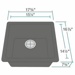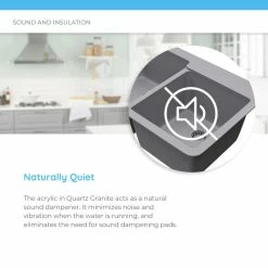 The 805-Black sink has numerous exciting features; not the least of which is its Granite composition. A balance of 80% quartz 20% acrylic, makes for a very dense, nearly impervious substance with a very attractive, satiny-smooth appearance. It is nearly impossible to scratch or stain because of its density and it can withstand extreme temperatures – a dropped knife will not scratch, acidic foods will not stain and hot pots will not burn the surface. No sound-dampening pads are required because Granite is inherently quiet. The 805-Black model is a smaller-sized sink, offering a nearly square, single-bowl design of modest depth; making it a perfect fit for kitchens with limited space. With an overall measurement of 17-3/4 in. x 16-7/8 in. x 7-3/4 in., it will require a minimum-width cabinet of 18 in. It is cUPC certified. 1 black strainer, designed to match the finish of this sink, is included. It not only provides a perfect complement to the sink, but it will catch unwanted waste.