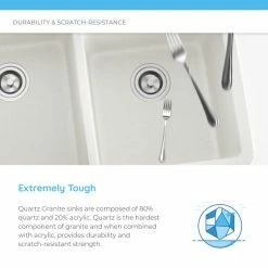 - Rare durability – 80% quartz and 20% acrylic unite to form a formidable surface